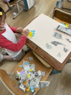 机いっぱいに画用紙を広げて,熱心に作品と向き合っていました。完成が楽しみです。