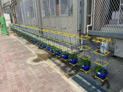 小さな芽だったあさがおですが,本葉が出て,大きく生長してきました。つるが伸び始めているあさがおもあったので,支柱を立てました。