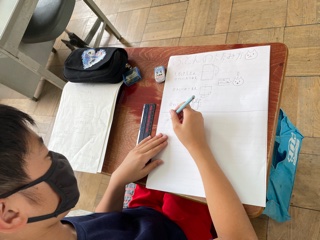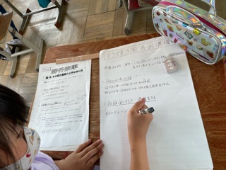 花背山の家に向けて,係活動に取り組んでいます。クリエイター係はしおりを作成しています。みんなにとって分かりやすいものにするにはどうすればよいか考え,工夫して書き進めていました。