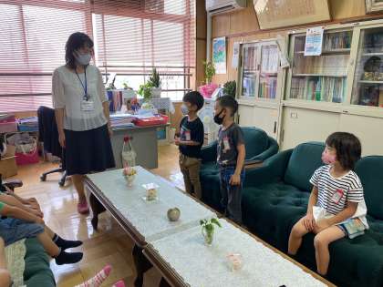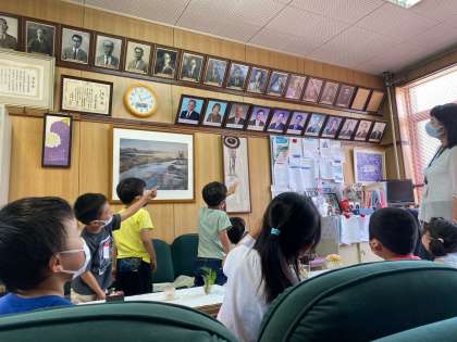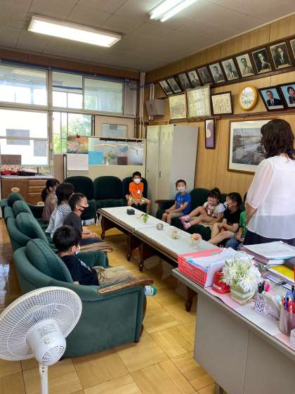 チームごとに探検に行く前に,全員で校長室へ探検に行きました。校長室には,たくさんの”秘密”があることがわかりました。校長先生にたくさんお話をしていただき,子どもたちはとても満足そうでした。