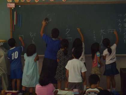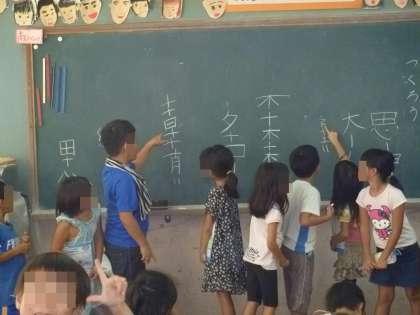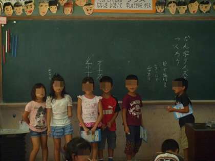 国語の学習は,みんなで漢字パズルを作りました。「日」+「生」=?「木」+「木」+「木」=?など,みんなカンジー博士になって問題を出し合いました。