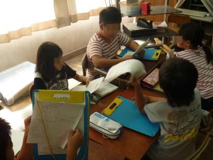 生活の学習では,生きもの(こん虫)について調べています。今日はグループ内で発表を行いました。いろいろな生きものについて知ることができて楽しそうでした。