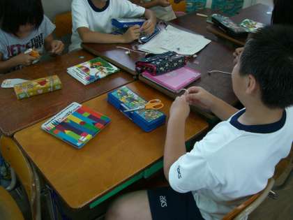 ひものむずびかたがむずかしかったけれど、4年生に教えてもらいながらちょうせんしました。