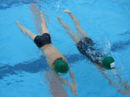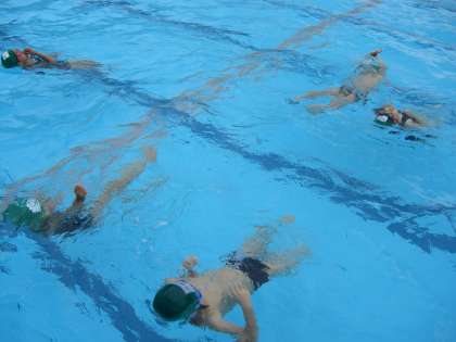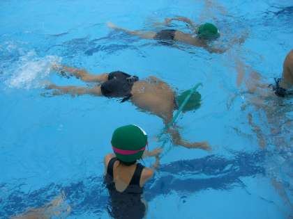 うでののばしかたや目線に気をつけてけのびをしたり、「かえるおよぎ」や「ラッコおよぎ」などですすんだりすることができるようになってきました。