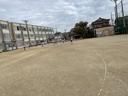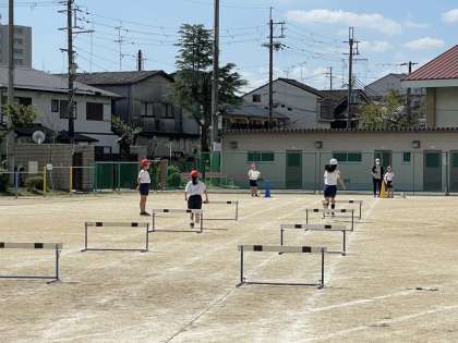 3歩で走りきることを目標に,自分に合ったインターバルを探しながら進めました。学習の後半には,ハードルを跳ぶことにも慣れてきた様子で,より速いタイムで走れるように挑戦していました。