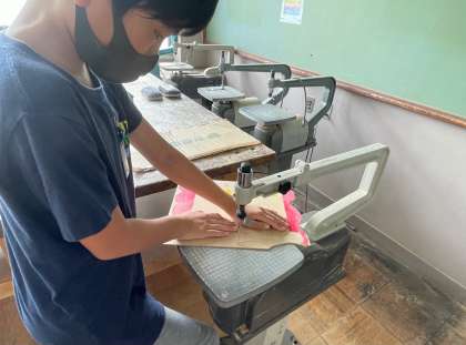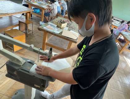 図画工作科で電動糸のこぎりを使って伝言板づくりをしています。慣れてくると,上手に板を動かしながら使うことができました。