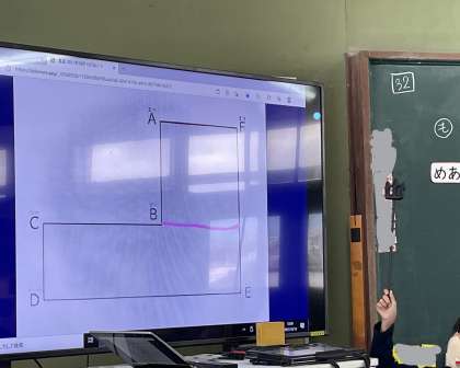 パソコンを画面に映し出して,自分の考えを発表しています。