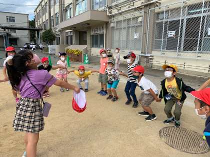 「天までとどけ,一,二,三。」と,みんなでジャンプ!
