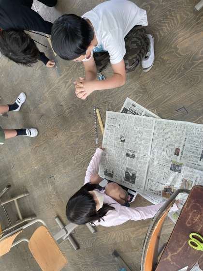 新聞紙を使って,1平方メートルを作りました。