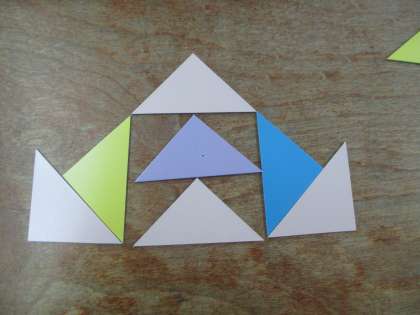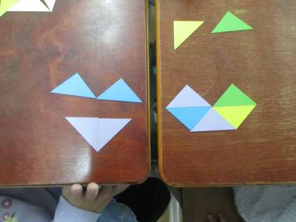 子どもたちが色板で作ったかたちです。何の形に見えますか。考えてみてください。