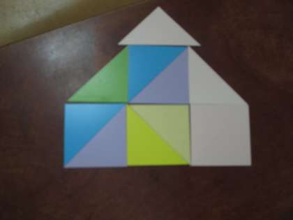 子どもたちが色板で作ったかたちです。何の形に見えますか。考えてみてください。