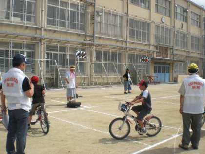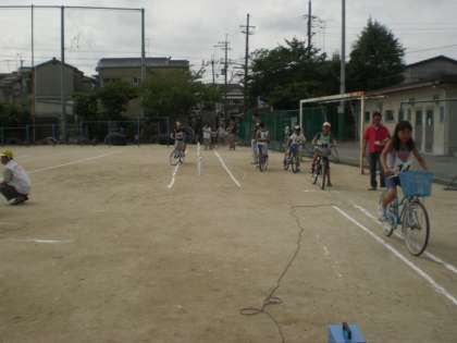 11日(土)9時より「交通安全教室」が行われました。約100名の児童が参加し,自転車の安全な乗り方を教えていただきました。