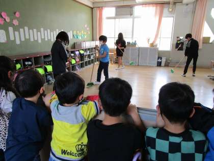 6年生は,掃除時間に1年生の教室を掃除しています。今日は掃除をする6年生の様子を1年生が見学していました。良いお手本になれましたね。