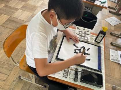 「さんずい」「古」「月」の3つの部分の組み立て方に気をつけながら丁寧に取り組みました。
