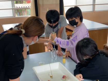 理科の学習では,ものの燃え方の実験を行っています。