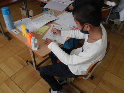 プリントで漢字の学習をしています。