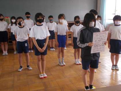 5月の児童集会を行いました。各委員長の紹介や委員会からの連絡を伝えました。