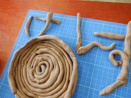 ねんどを紐状に伸ばし,いろいろな形を