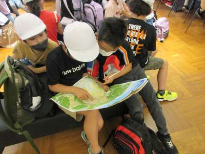 子ども達は、気づいたことをメモしたり,次の行き先を確認したりしていました。