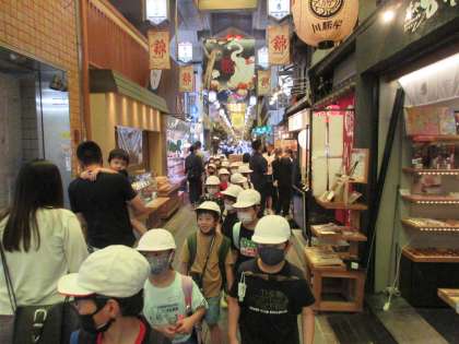 錦市場を通りました。様々な店があり,子ども達は驚いていました。また人の数にも驚いていました。