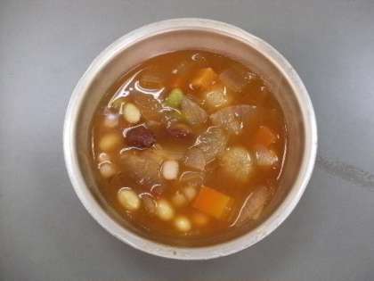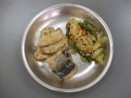 あじのから揚げ アスパガスのソティ ソーセージと豆のトマトスープ