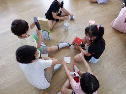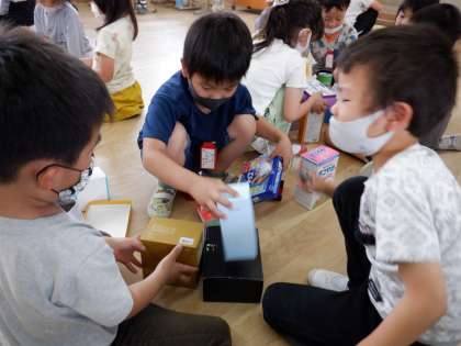 いろいろな形の箱を使って遊んだり,