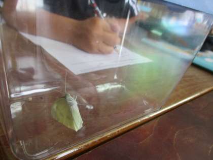教室で飼っていた青虫が成虫のモンシロチョウになりました。しっかり観察をして,外へかえしました。子どもたちは飛んでいくチョウに「がんばれー」と声をかけていました。