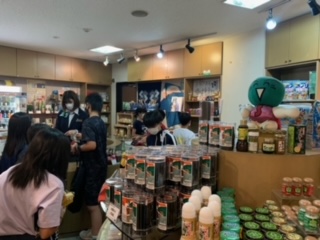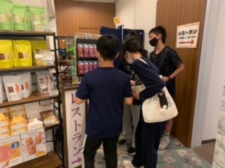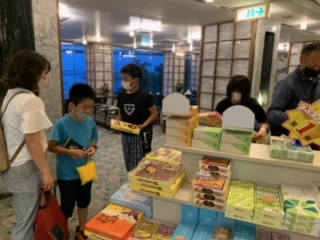 ホテルの売店でお土産を選んでいます。誰に何をあげようかなあと考えながら、お土産を買っていました。