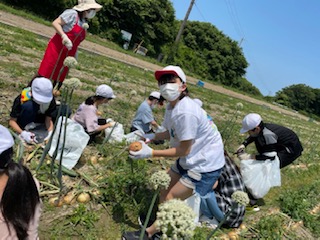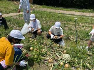 淡路島牧場で玉ねぎほりをしました。玉ねぎはお家に持ち帰ります。淡路の玉ねぎ、ぜひお家で味わってください。