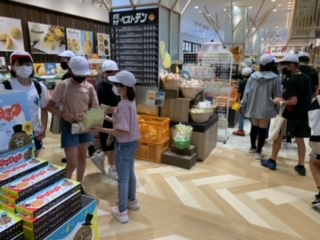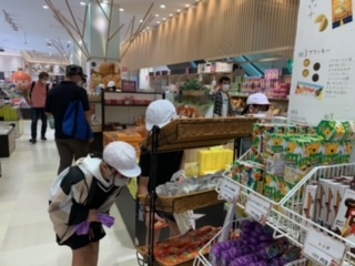 淡路ハイウェイオアシスでお土産を買いました。たくさんある淡路や徳島の土産物の中から、お金の計算をしながら買い物していました。