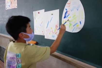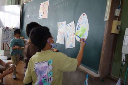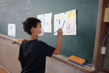 黒板に,お試し用紙があるので,色の加減を確かめてから