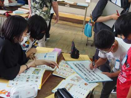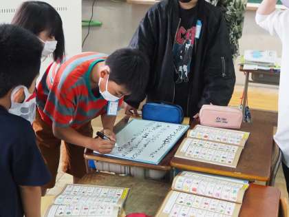 ALTの先生との学習では,初めにEnglishしりとりをしました。様々な単語に触れながら覚えていってほしいと思います。