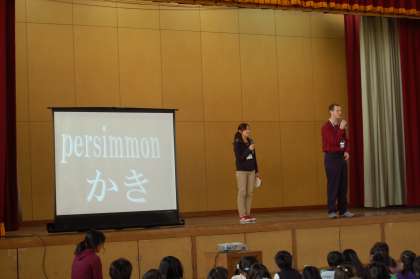 自己紹介を聞いた後,秋のことばを英語で発音してもらいました。