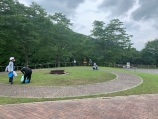 フライングディスクゴルフをしました。みんなだんだんとうまくなっていました。