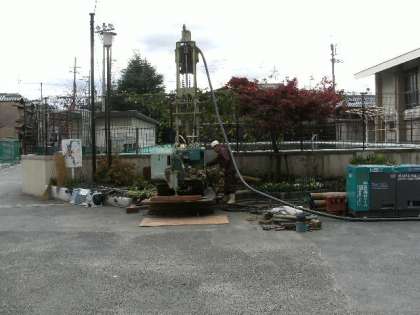 淀ライオンズクラブのご厚意により,井戸を掘っていただくことになりました。その工事が今日から始まりました。池の水,植物のための水に利用できると思います。また,災害時にも役立つと思います。