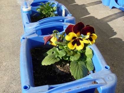 冬休みに入り,冷えこみはいっそう厳しくなりました。そんな中子どもたちが春に向けて植えたパンジー,ビオラ,ノースポールが元気に育っています。春までがんばって育ってほしいと思います。