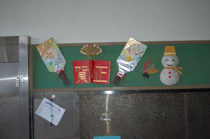 給食室にもお正月の飾りが飾られていて,華やかです。