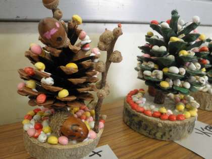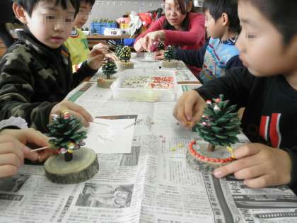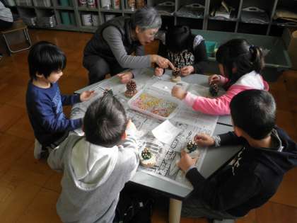低学年(1,2,3年)は「松ぼっくりツリー」作りに挑戦です。