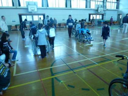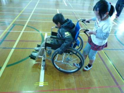 3・4年生の地域交流の学習で車椅子体験をしました。