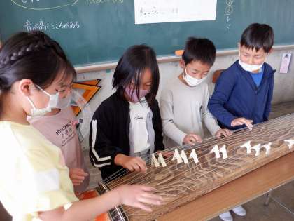 音楽科の学習で、お琴に触れました!どんな楽器なのか、どんな音なのか…実物を前に、興味津々の子どもたちでした。