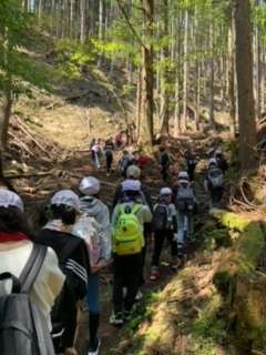 山の中腹ぐらいまで来ました。子どもたちは、元気に頑張って歩いています。
