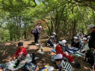 天狗杉の頂上に12時半頃到着し、お弁当を、食べました。