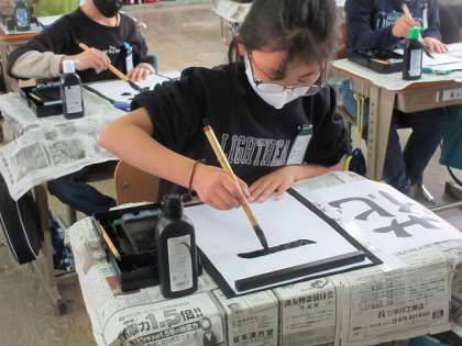 書写の学習では,「花」書きました。