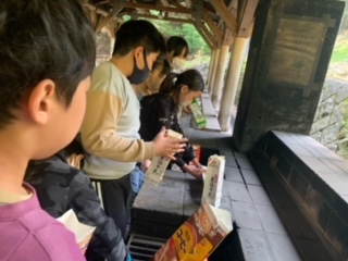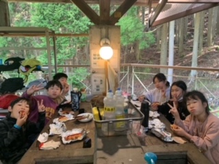 3日目の朝食はパックドッグです。自分たちで、パンにキャベツとソーセージをはさみ、牛乳パックに入れて焼きました。自分で作ったホットドッグは、とてもおいしかったです。