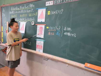 図を見て、文字を使って表された式の意味を考えました。