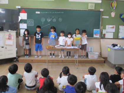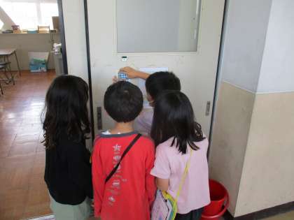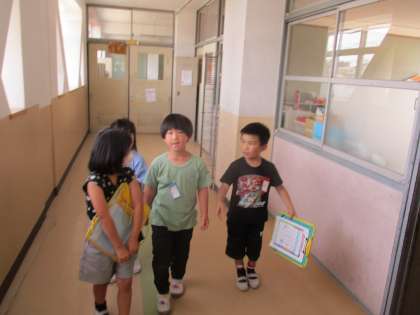 2年生が1年生を連れて学校案内をしました。すごく頼もしかったです。