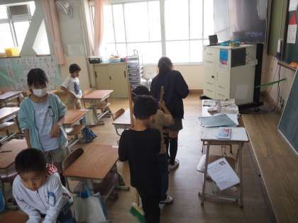 6年生に優しく教えてもらい、少しずつ掃除の仕方が分かってきました。きれいになると気持ちがいいですね。