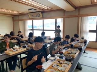 2日目がスタートしました。雨も上がり、みんな元気です。朝食をおいしくいただきました。