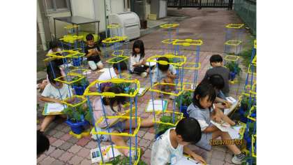 ゴールデンウイーク明けに、朝顔の種をまきました。その種から、芽が出て、つるもどんどん伸びてきました。「このままでは、誰かにつるを踏まれてしまう。」「たいへんだぁ」ということで、支柱をたてました。これで、つるがどんどん伸びても大丈夫です。
