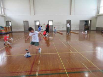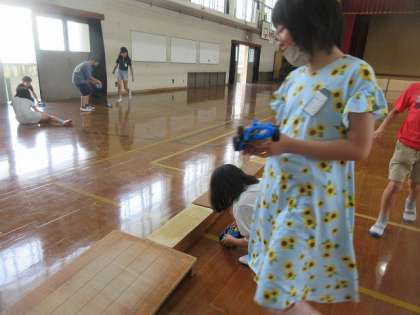 電池のはたらきでは、乾電池を使ってモーターを回して気がづいたことを話し合ったり実験したりしてきました。わからないところはお互いに教え合っている姿がすばらしいです。今日は、体育館で電池のおもちゃで色々なことを試しながらみんなで動く電池の車で楽しみました。